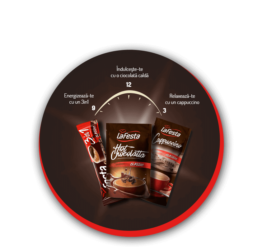 Începe ziua, conversaţia, pauza, prietenia, seara, povestea, relaţia, surpriza, vacanţa alături de La Festa.